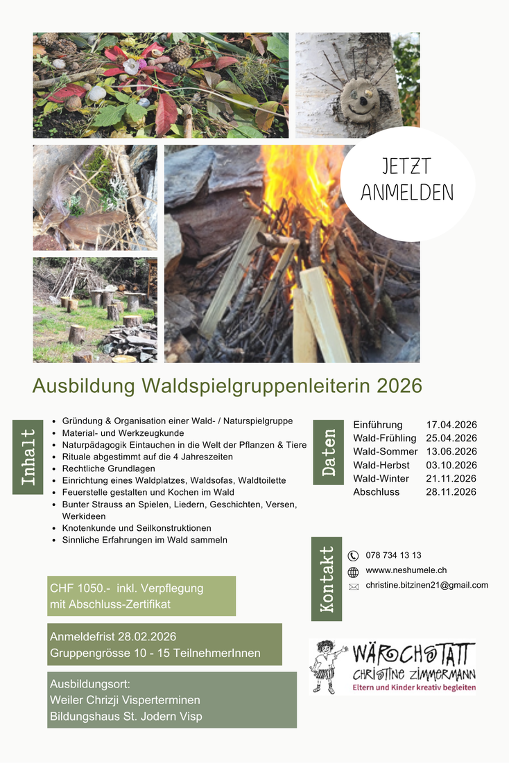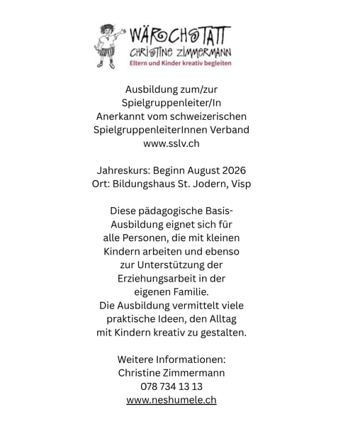 Weitere Infos bei Christine Zimmermann, 078 734 13 13
