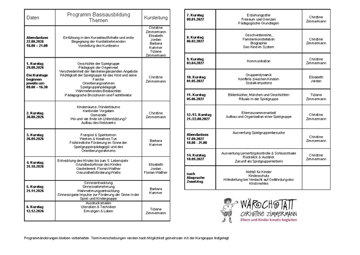 In diesem Kurs lernen Sie, selbständig eine Spielgruppe zu organisieren und zu führen, Kinder kompetent zu begleiten und mit deren Eltern zusammen zu arbeiten.
